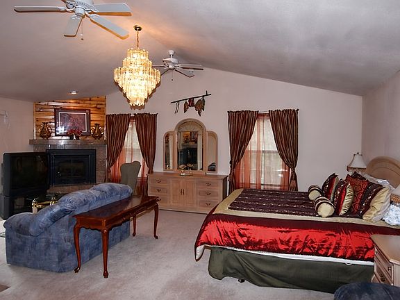 This ONE LEVEL property is definitely worth getting inside for a look. You will be glad you did! Lots of updates on flooring. The master bedroom and en suite is just under 500 square ft. giving you lots of room for a king bedroom suite and more! Access the back covered deck from master by sliding glass door. Nice covered deck offers treed views and runs the length of the home, giving you comfortable outdoor living space. Beautiful feature brick fireplace in living room, and 2nd gas fireplace in master bedroom. Two car attached garage.