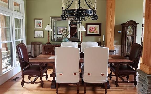 Beautiful 4 BR, 3.5 BA cottage style home w/ breathtaking view of the 15th green and long range view of the 16th hole of Tillery Tradition CC golf course. This home is perfect for entertaining w/ an open floor plan, gourmet kitchen with an industrial 48" gas stove/griddle w/ double ovens, granite counter tops, walk in pantry and stone back splash; and the keeping room and the lodge room both have large gas started wood burning fireplaces. The master bath has a large soaking tub, double walk thru shower w/ 2 w/in closets. Exterior features beautiful stonework and a covered front porch, a screened in back porch, large deck and stone patio w/ fire pit for outdoor entertaining or for a relaxing day watching golfers. Storage w/walk in attic and 3 car garage. Very efficient geothermal HVAC system and central vac. Landscaping includes low maintenance Zoysia grass, perennial gardens, and sprinkler system. The 2nd level bedroom is large enough for a ping pong table for additional entertaining.