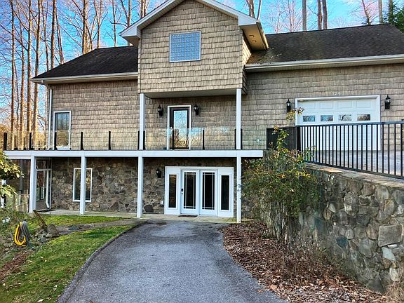 Quiet & private. Custom built lake view and sunrise home. No POA & setup for entertaining. Year round views. Hardwood & tile throughout. Unobstructed views w/upgraded clear railing. Several outdoor entertaining areas with a large side stone patio area, screened in area & open deck. Master suite w/ large seating area/office area where you can sit by the fire and enjoy the view of the lake, watch your favorite show or home office. With over 2 acres of land, a detached 24X30 garage and a 10'x16' out building with electricity. A large RV parking area & other parking areas. New HVAC in 2020. New septic tank alarm, risers, floaters & pump completed in 2022. 10 min to Westlake & convenient to Roanoke & Vinton. House is being offered as-is. This property is a must see.