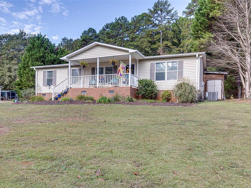 This amazing home feels brand new with fabulous lake views! This stunning detitled double wide is set on a brick foundation and had been completely renovated from the ground up. No room has been ignored. No carpet, all Luxury Vinyl Plank. Updates/replacements include way too many to mention (see the attached comprehensive list) but include HVAC, doors, roof, appliances including water heater, washer and dryer. Bathrooms have been completely renovated and are luxurious. Primary closet has been rebuilt to included double height clothes rack, shoe rack and built in rack for storage cubes. The plumbing has been replaced throughout the entire home. Even the traditional separation beam has been replaced with beautifully detailed wood trim that highlight the raised ceilings in the living room and primary bedroom. There are 5 exterior cameras that will convey. The vast lake views from the front porch are mesmerizing. There are 3 close by boat launch locations and plenty of room to store your boat on the property or take advantage of closeby marinas on Lake Hartwell. The backyard offers a cute and cozy back deck that has privacy walls and a tin roof covering. Home includes TWO outbuildings both with electricity and one has insulation and a mini-split HVAC and being used as a workshop. The street is a cul-de-sac for additional privacy. This home could be sold completely furnished and offers a riding lawn mower, Generac, yard and hand tools for reasonable purchase.