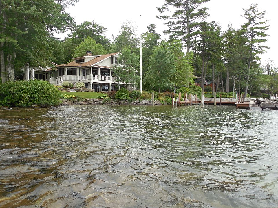 Dramatic craftsman / lake style property on Lake Winnipesaukee with 163â of pristine shorefront and dramatic long-range lake and mountain views! Located in West Alton with a prestigious Smith Point location. One floor living dominates the open flowing floor plan. With a 2-bedroom suite and two sleeping lofts, there is room for all to enjoy the Big Lake and all it has to offer. Expansive panoramic mountain and lake views abound! Nestled on a private professionally landscaped lot, with ample docking for all your watercraft contained with a large stone breakwater. A new, 50-year roof was installed 11/2014. Enjoy your own private island: Gichigumi Island is steps away from a small shore beach as well. This truly, one of a kind Smith Point Gem is hidden from the road.