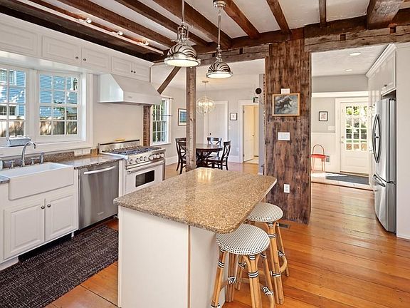 - Kit Dscrp: Pantry, Dining Area, Flooring - Hardwood, Countertops - Stone/Granite/Solid, Kitchen Island, Closet, Ceiling - Beamed, Bathroom - Full