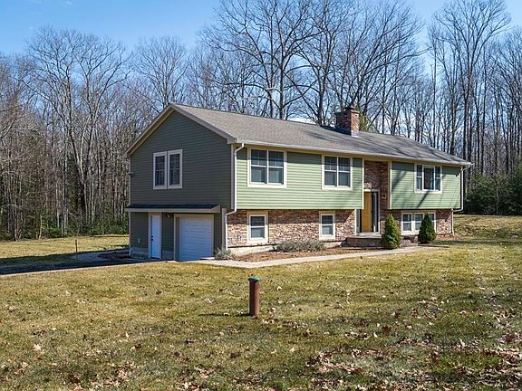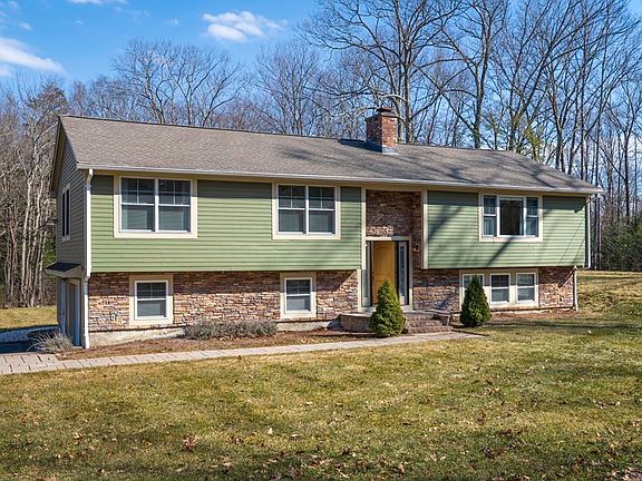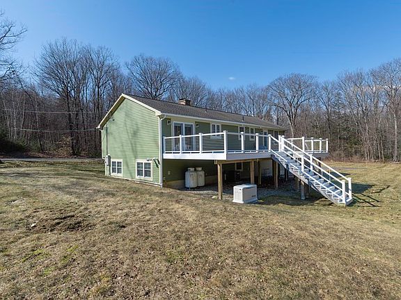 Totally remodeled Raised Ranch in lovely Westhampton setting. The main floor features a striking floor to ceiling stone fireplace, cathedral ceiling, and hardwood floors. Spacious kitchen with upgraded cabinets, granite counter tops, tile back splash, breakfast bar and stainless steel appliances complete with wine chiller. Great room, kitchen and dining room are all in one open, airy space which walks out to over-sized deck overlooking the level, cleared backyard. Pella patio doors with between-the-glass blinds. The primary bedroom has hardwood floors a walk-in closet and fully tiled bathroom with shower stall. A French door from the bedroom gives access to the deck. A perfect spot for a hot tub! There are two additional bedrooms and full bath on this level. The lower level offers the same stone fireplace in the finished rec room, 1/2 bath and laundry. Whole house generator, new septic, central air, one car garage, conditioned storage space. Just move in and enjoy!