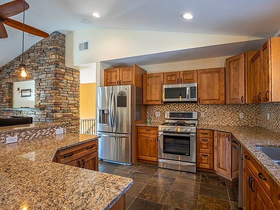 - Features: Cathedral Ceiling(s), Flooring - Stone/Ceramic Tile, Dining Area, Countertops - Stone/Granite/Solid, Countertops - Upgraded, Kitchen Island, Breakfast Bar / Nook, Cabinets - Upgraded, Deck - Exterior, Exterior Access, Open Floorplan, Recessed Lighting, Remodeled, Stainless Steel Appliances, Wine Chiller