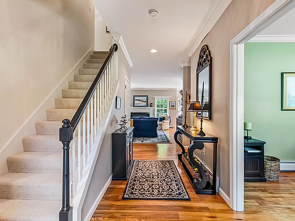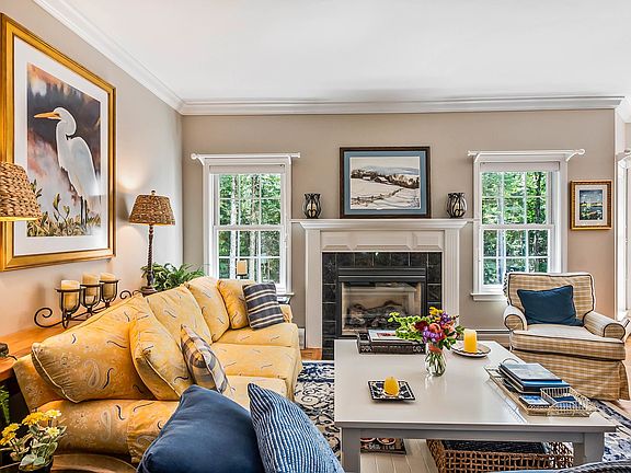 Enjoy a walking lifestyle from this private location on a quiet cul-de-sac street in the heart of the New London village. Bright, open and sunny, this very upscale home features easy open concept first floor living. Spend cozy evenings by the living room fire, the spacious kitchen offers abundant storage. The sun-splashed dining area opens to a year-round sun room. First floor primary suite features a spa quality bath & large closets. An inviting study offers custom built-ins. Upstairs 2 large bedrooms each feature en-suite baths. The lower level offers a family room, bedrm w/bath & hobby or studio space. A large storage room could become additional living. Walk to shop for groceries, goods and the post office. Fine dining is right around the corner. Bucklin Beach on Little Sunapee a short bike ride from your front door! A rare opportunity in the heart of New London!