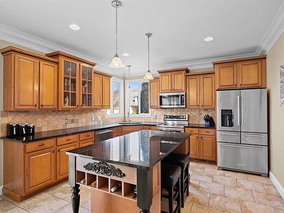 OPEN HOUSE CANCELLED DUE TO MULTIPLE OFFERS. Brick & stone executive 2 story on quiet cul de sac in a very private subdivision. This 5 bed 4.5 bath home features luxury custom details everywhere you look! From the gorgeous wood entry doors to the extensive crown molding, tray ceilings, custom built ins & library paneling this home is truly one of a kind. Welcoming great room has a 5 window bay that fills the room with natural light & a gas fireplace flanked by built in bookcases. The kitchen is a chef's dream with large walk-in pantry, ample custom staggered cabinets & granite counters, center island & HUGE breakfast room with extra seating area and room for all to gather also with access to the composite deck for easy indoor/outdoor entertaining. The master suite is made for relaxing & has a huge walk in closet & full bath with separate vanities, jetted tub & gorgeous, oversized walk in custom glass block shower. Finished walk out LL with wet bar kitchenette, full bath & bedroom. Additional Rooms: Mud Room