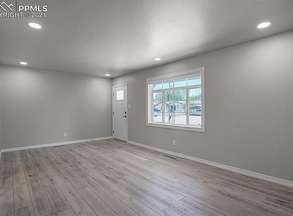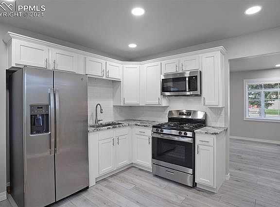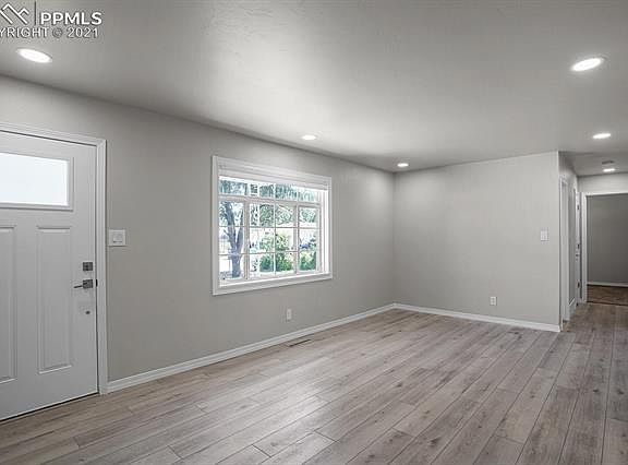 Here is a great ranch home that feels like new on the inside. New modern "coretec" flooring continues throughout the home other than the bathroom, laundry area, and bedrooms. In the bedrooms there is new plush carpet and pad. There are 3 bedrooms that share a totally remodeled bathroom. The bathroom has been finished with new a tub, porcelain tile, epoxy grout, new vanity with granite counter top, and a new soft close toilet. The entire home has been completed with new hand trowel texture and paint. All the doors have been replaced as well as the trim. The kitchen has brand new stainless steel appliances, granite counter tops, new cabinets, a large under mount sink, classic subway tile backsplash and modern can lighting. Walk out from the kitchen to a 20' x 10' cover patio for easy bbq access. You will find the living room open and generously sized. The garage door and opener are brand new. When you enter from the garage into the home you are greeted with a spacious laundry room / mud room with additional cabinetry and granite counter tops. The drive way is new concrete and wide enough to accommodate 2 cars. There are some nicely sized trees in the front and lush vegetation in the back yard. This home is minutes away from parks and schools. Access to I25 and fort Carson is a short drive. Set your showing today!