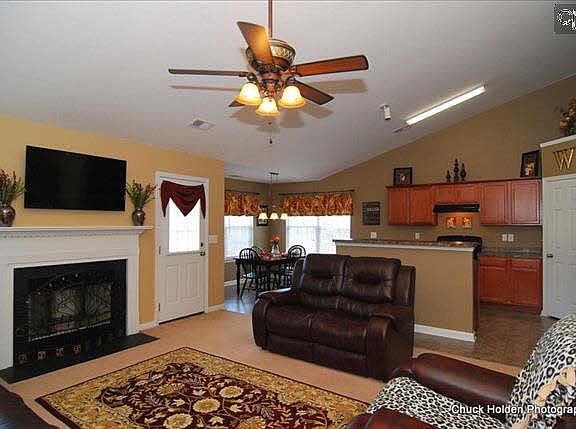 Pristine home for entertaining! You have to see this true one story open floorplan home with vaulted ceilings, wood burning fireplace, open great room and kitchen are perfect for entertaining, kitchen has large pantry with bar and eat in breakfast area, large master with HUGE master walk in closet, master bath has dual sinks with separate shower and garden tub, large two car garage, and fantastic backyard to host friends and family. This one won't last long!