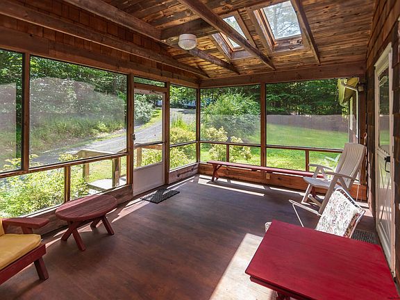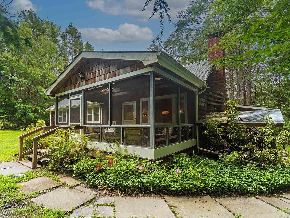 Tranquility and the sounds of a rushing stream is what you'll find with this 4 bedroom 2 bath home nestled on over 2 acres in the woods surrounded by mountains. Relax in peace on the screened in front porch. Feel the openness of the livingroom with beamed and vaulted ceiling and skylights to the heavens. In fall and winter get cozy around the cobblestone fireplace. The kitchen has been lovingly redone with beautiful cabinetry and newer appliances. You won't mind doing the dishes looking out past the formal dining room through the wall of windows into the peaceful backyard. The wall of windows add to the ambience of your dining experience. Or walk outside to the expansive 32x16 deck and have breakfast outside. The primary bedroom has its own private bath and sliders to the aforementioned back deck. Don't miss the finished attic loft for addition sleeping or office/play space. This home has had one owner for 55 years and has been lovingly cared for and enjoyed and is ready to move right in. Even the power lines for this house have been buried for your safety and visual pleasure. The furniture is even negotiable making this an easy move-in. For only $390 per year you can join the CPOA, the Chichester Property Owners Ass'n to use the nearby clubhouse, the maintained swimming hole and many different events throughout the year. Hunter Mt ski area is about 15 minutes away as is Woodstock and Phoenicia has many events during the year.