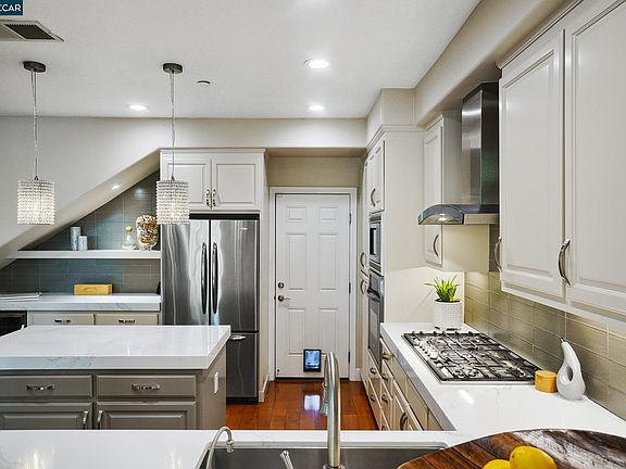 Just hit the Market NOW! Desirable luxury Alamo townhome that lives like a single family residence! Only 8 homes in this coveted neighborhood. Beautifully UPDATED with top of the line finishes, appliances and more. Rarely available, this spacious 3+ bedroom home welcomes you w/vaulted ceiling, lots of natural light, two car attached garage, two bathrooms and LARGE bonus room -perfect for the home office you've been wanting or how about a home gym or theater! Over $100,000 in upgrades and notable mentions! Beautifully updated kitchen with quartz slab counters, glass tile backsplash, pendant lights over island, 5 burner gas cooktop, Brizo faucet, filtered hot/cold water, wine refrigerator & more. Updated bathrooms w/gorgeous stone selections; a floating vanity & more Brizo finishes to name a few. Downstairs primary bedroom w/fireplace, shutters & walk in closet. Updated & spacious primary bathroom w/double vanity, soaking tub. Living and dining room w/custom built in cabinetry, ceiling fan & chandelier. Located on a court in Alamo Gardens and rarely on the market, this stylish home is nestled in a small neighborhood lined with beautiful trees, nearby creek, trails, Round Hill Country Club, parks, shopping, dining and more!