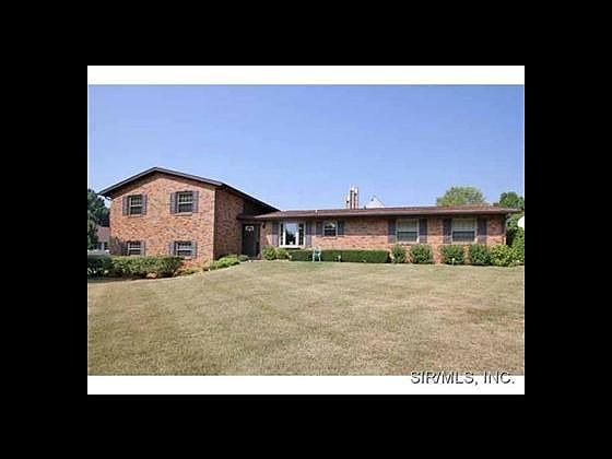Chenot Place Beauty - Original owner 4 bedroom brick tri-level. One full & two 3/4 baths. Versatile living and dining rooms have laminate wood floors effect. Chef's delight kitchen w/cook island and snack bar, desk and custom cabinets. Generous size family rm. (has gas log brick fireplace),den, laundry rm., bedroom & bath in partial walk out basement. 16x15 deck covered patio, manicured landscaping. Close to golf course -SWIC, Metro Link and Scott Air Base. Home Protection Plan included.