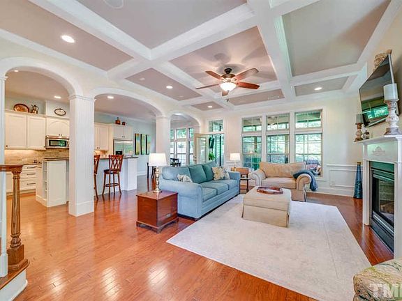RARE, UPGRADED, END UNIT. Open floor plan with large rooms, gleaming hardwood floors, granite, and SS appliances incl. wine cooler. STUNNING UPGRADES: remodeled kitchen, remodeled owners bath with heated flooring, custom sunroom featuring privacy & separate HVAC. Detailed trim and molding throughout; coffered ceilings. Beautiful landscaping. Walk up storage. Stroll the emerald pond and adjacent greenway. Walk to shopping, dining, more. Immaculately maintained. New roof. Truly gorgeous. PRIME LOCATION!