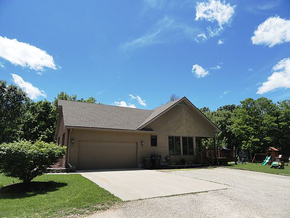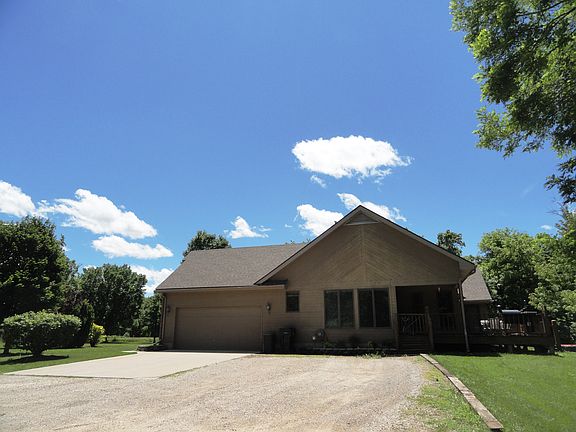 Brick, one-story home on 4.7 acres at the edge of town built in 1995. Tree lined lot with creek. 1,741 sq. ft. on the main floor, vaulted ceilings in the living room, stainless steel appliances stay, master suite w/ jaccuzi tub and walk-in shower and access to the deck. 2+ bedrooms and 2 baths on the main floor and one in partially finished basement. CH/CA and 2 car attached garage. Wake up and enjoy a cup of coffee on the deck overlooking the large back yard.