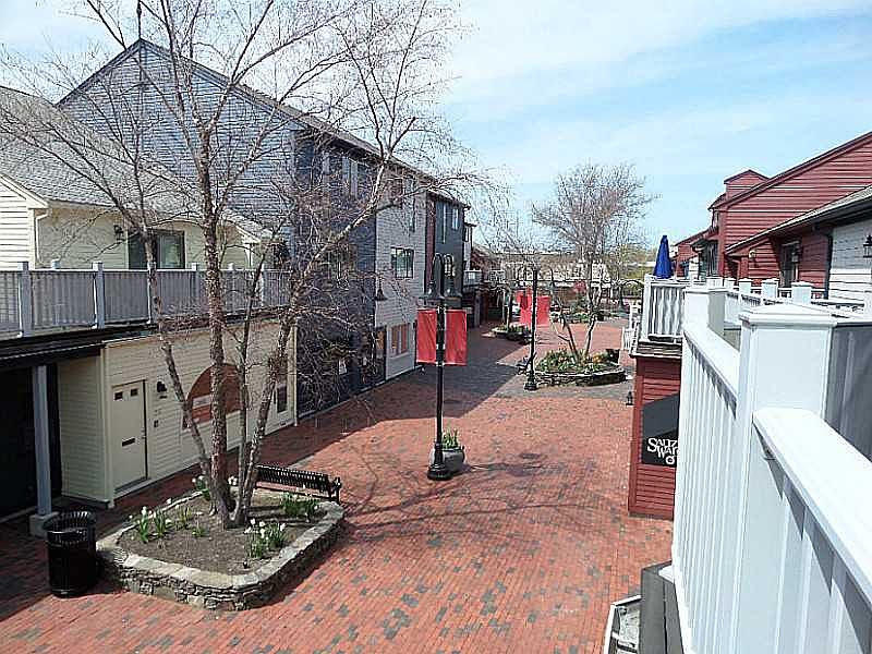 Brick Market downtown location! Renovated and fresh interior w/new kitchen,wood floors,vaulted ceiling,1.5 bths, storage , AC, deck overlooks courtyard, prkg, waterfront and shoping district. Staircase to open loft bdrm/office area. Pet neg