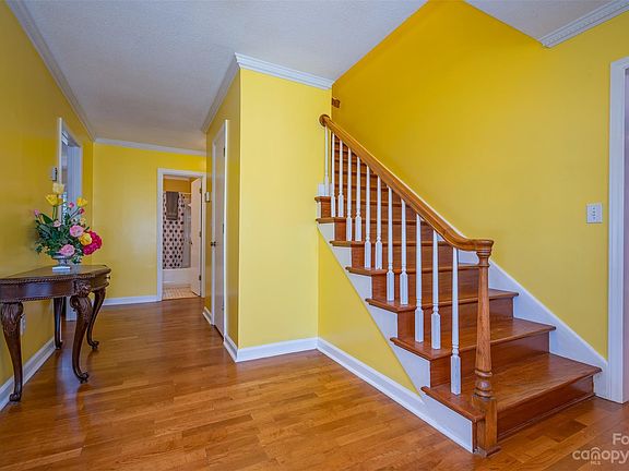 STUNNING & SPACIOUS HOME offering pretty dental moldings, inviting entry, large living room, dining room, den with fireplace, kitchen with ceramic floor & stainless appliances, full bath, laundry room and 2 car garage, all complete the main level. Up the pretty stairway to second floor featuring 4 bedrooms, 2 full baths. Primary bedroom offers bath with separate dressing area and walk in closet. All bedrooms have walk in closets or large standard closet. The spacious den leads out to the courtyard, fenced back lawn and corner lot. Located near downtown Rutherfordton with entertainment for all...including museum, shops, restaurants, park, walking trails and more.
