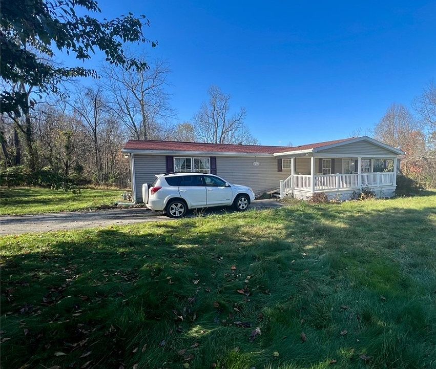 Doublewide offers Country Living close to many amenities. Inviting Large Covered Front Porch to relax outdoors. As you enter the home the OPEN FLOOR PLAN provides many flexible living options. Living Room has an extension area for a potential Casual Dining w/table and chairs. Enjoy a Kitchen w/Counter Bar & plenty of cabinets & counter space featuring Updated Laminate Flooring; there is also a Butler Pantry area. Spacious Formal Dining Room with Lots of Natural Light. Famiy Room off the Kitchen features a Decorative Fireplace and a great gathering area for family/friends. Rear Deck overlooks private rear yard. Home showcases Split Bedroom Plan w/Primary Bedroom off the Family Room w/own private Full Bathroom w/Soaking Tub & Shower and Large Walk-in-Closet. Other two Bedrooms on the opposite end of the home have ample space for your treasured furnishings. Laundry on Main. Huge Basement offers more flexible living space. Lots of Off-street Parking too. Systems Home Warranty Included.