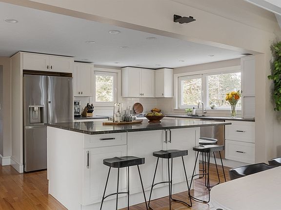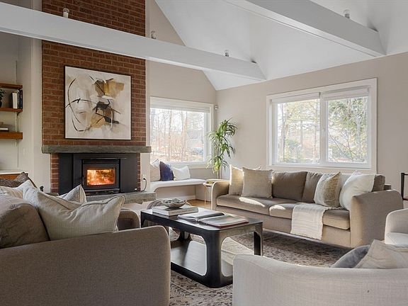 Thoughtfully modernized, engineered and renovated with an eye for efficiency this 4 bed 3.5 bath home delivers high quality comfort with your health in mind. A large foyer w/storage leads you into the open concept kitchen and dramatic living/dining room w/19’ vaulted ceilings and a wood stove. The reno’d kitchen features a granite island with counter seating that overlooks the space and flows easily to the back patio for al fresco dining. The ensuite bedroom on the first floor is ideal for guests or those seeking single level living. A laundry room, an office, and family room with fireplace round out the 1st floor. Upstairs there are 3 beds and 2 full baths. The primary suite is complete w/ample closet space and a spacious bathroom w/radiant floors, large bathtub/shower and double vanity. Basement has a small office and large unfinished exercise room w/potential. HVAC ’15; Siding, Insulation, Windows ’16; Kitchen/Baths ’17; Roof, Solar Panels ’18. EV charging in two-car garage.