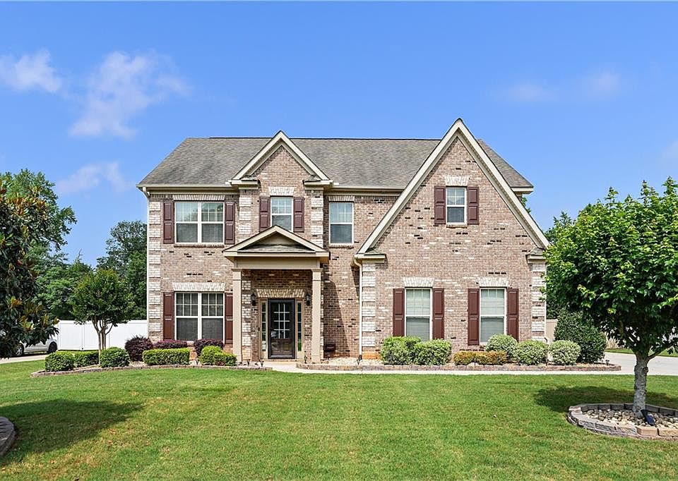Discover your dream home in the prestigious Traditions at Crystal Lake community! This exquisite 5-bedroom, 4-bathroom residence offers a perfect blend of luxury, comfort, and style. Enjoy the beauty and durability of plank hardwood flooring throughout the entire home. Step into the grand open foyer adorned with beautiful wainscoting, setting the tone for the elegance found throughout the home. The formal dining room, seating up to 10 guests, features a stunning coffered ceiling. The gourmet kitchen boasts ample cabinet space, and a large, oversized island that overlooks the family room is a chef's delight. The family room features a cozy gas fireplace, creating a warm and inviting atmosphere. The main floor offers a guest suite creating comfort and privacy for guests. The expansive primary suite includes a sitting area, walk-in closet, and a spa-like en suite with a double vanity, soaking tub, and a standalone shower. Each of the additional bedrooms are generously sized, offering ample closet space. Bask in natural light year-round on the extended screened in patio, perfect for relaxation. The fenced backyard is a true outdoor paradise, featuring a shed powered by a solar panel, a peach tree, grape vines, and muscadines. It's the perfect setting for gardening, play, or simply enjoying the outdoors. This exceptional home combines luxury living with practical amenities, all within the highly sought-after Traditions at Crystal Lake community. Don't miss your chance to own this remarkable property.