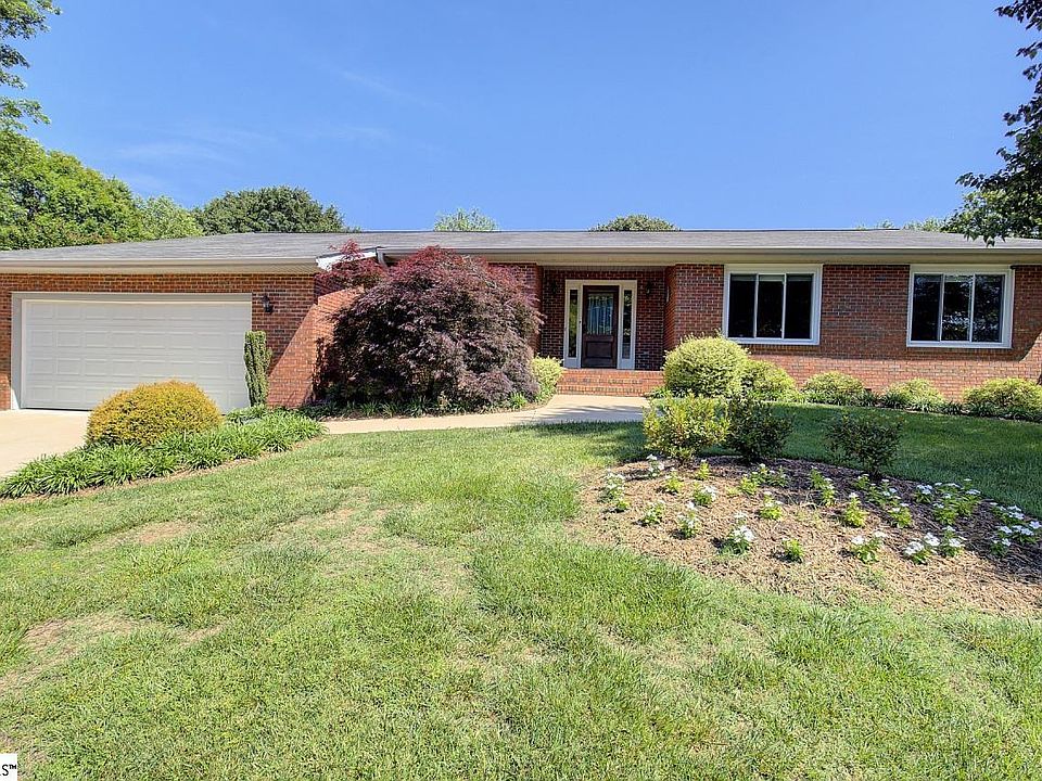 Nestled on a desirable corner lot in a prime location, this stunning all-brick home offers a blend of modern amenities and timeless charm. Conveniently situated with easy access to Greenville and all surrounding areas, this residence combines both convenience and luxury. The heart of the home is a recently remodeled kitchen that boasts a double gas range, an icemaker, and sleek granite countertops. Recessed lighting and ample natural light make this space a chef's delight. Adjacent the kitchen, the den features expansive open views, providing a perfect setting for relaxation or entertaining guests. Step outside to your private oasis, where a beautiful patio and pool await. A pergola offers a shaded retreat, while the outdoor kitchen is ideal for al fresco dining and summer barbecues. The custom landscaping throughout the property adds to the home's allure, offering lush greenery and well-designed plantings that enhance its curb appeal. Additional features include maintenance-free windows, ensuring ease of upkeep, and a tankless water heater for on-demand hot water and energy efficiency. This corner lot home is a perfect blend of indoor luxury and outdoor living, making it a unique find in today's market.
