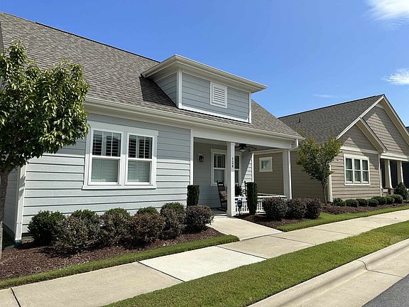 TURN KEY! MOVE IN READY! Welcome to easy living with lawn service included. Home located in desirable The Walk at East Village - 55+ premier community. This open floor plan features 3 BR, 2 Bath Custom built floor to ceiling book cases located in LR, Extensive storage in garage including over head and custom built wall storage cabinets and drawers. Beautiful Plantation Shutters on all windows. Lots of counter top space, nice storage for appliances to stay out of sight and a gas stove make this a cooks dream. Enjoy your morning coffee on front porch or covered back porch and then use the sidewalks to walk to near by Clubhouse, gym , tennis or pool. Rear entry garage and driveway. Seller is providing a 1 year 2-10 home warranty. Seller will leave refrigerator, front loading washer/dryer and risers with acceptable offer.