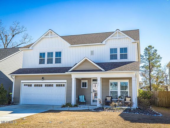 This like new coastal home is loaded with style and little extra upgrades. Situated in charming Hampstead in the subdivision of Sparrows Ben, this neighborhood is centrally located in the heart of Hampstead and features a swimming pool and cabana for homeowners to enjoy. Known for its award winning Topsail Schools, Hampstead is located just minutes from Topsail Beach, Surf City and Wrightsville Beach, as well as the Intracoastal Waterway. You will love this open and airy floorplan as you walk through the door and notice the beautiful laminate wood flooring throughout the lower level. A flex room downstairs offers many options such as an office or craft room. The kitchen, dining room and living area are all open to each other with a convenient half bath and cozy fireplace. The kitchen features modern grey cabinets, stainless appliances, granite countertops, white subway tile backsplash, and a huge island for seating and cooking as well. Upstairs you will find three large bedrooms and a very large 23 x 14 bonus room for endless possibilities. The bathrooms are very spacious and have double vanities and the master has a separate tub and shower. Outside is where the magic happens with a beautiful screened-in porch and oversized concrete patio area and jacuzzi hot tub. The seller is including the hot tub with the sale of the home to make this a really fun space from day one. Just around the corner is an outdoor shower that is great for showering off after using the jacuzzi, neighborhood pool, coming home from the ocean, or a hot day of working outside. The back yard is completely enclosed with 6 ft wood privacy fencing and has some very pretty trees. In the garage you will find a 23x12 area in addition to the two car garage that can be used as a third garage bay or for storing things you need to access easily. Between the attic and garage there is a ton of storage space. Schedule an appointment today to see this amazing home for yourself!