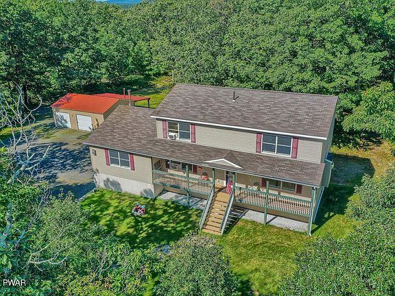 Long Private Drive leads to this privately set Colonial Home on 4.63 acres bordering a reserve area. Home features spacious living room with propane fireplace, large eat in country kitchen with butcher block countertops and stainless steel appliances, formal dining room, family room with vaulted ceiling and propane fireplace. Upper Level features a luxurious master suite with hardwood floors, large walk in closet with built in organizers and master bath. Three additional bedrooms and full bath finish off the upper level floor plan. So much room for expansion in the unfinished basement, 2 car garage, screen porch and front covered porch. There is also a 24 x 31 detached garage with a 31 x 16 lean to off the back. Property has its own gun range which meets state law requirements.