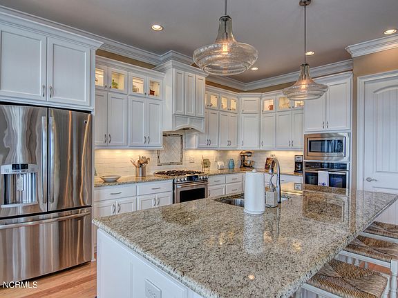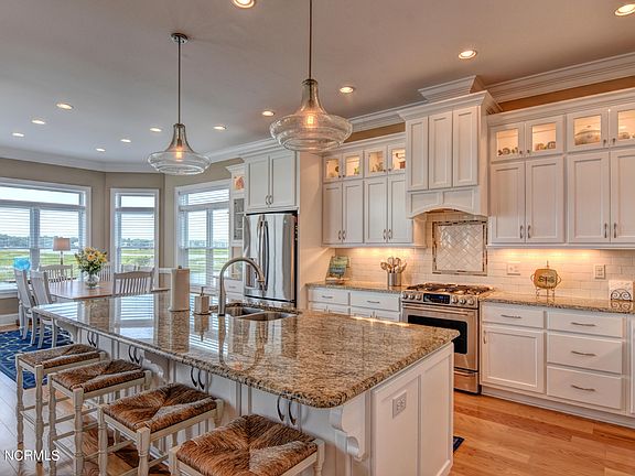 Spectacular Soundfront Custom Home on the island of Ocean Isle Beach, N.C. This deep waterfront property has exceptional views of the Intracoastal Waterway, the Ocean Isle bridge, the marsh, and the magnificent sunsets! The open design and 9-10 foot vaulted ceilings, allow for abundant natural light through the sprawling living room, dining room and gourmet kitchen fully equipped for entertaining. Wide outdoor covered decks off every level overlook the heated saltwater pool and pier with floating dock. Enjoy the large private laundry room, powder room, custom elevator, and 5 private bedrooms with 5 ensuite bathrooms. The first level joins storage and large garage spaces open to the gorgeous outdoor pool patio and large fenced yard. Please see attached features list for this remarkable home.
