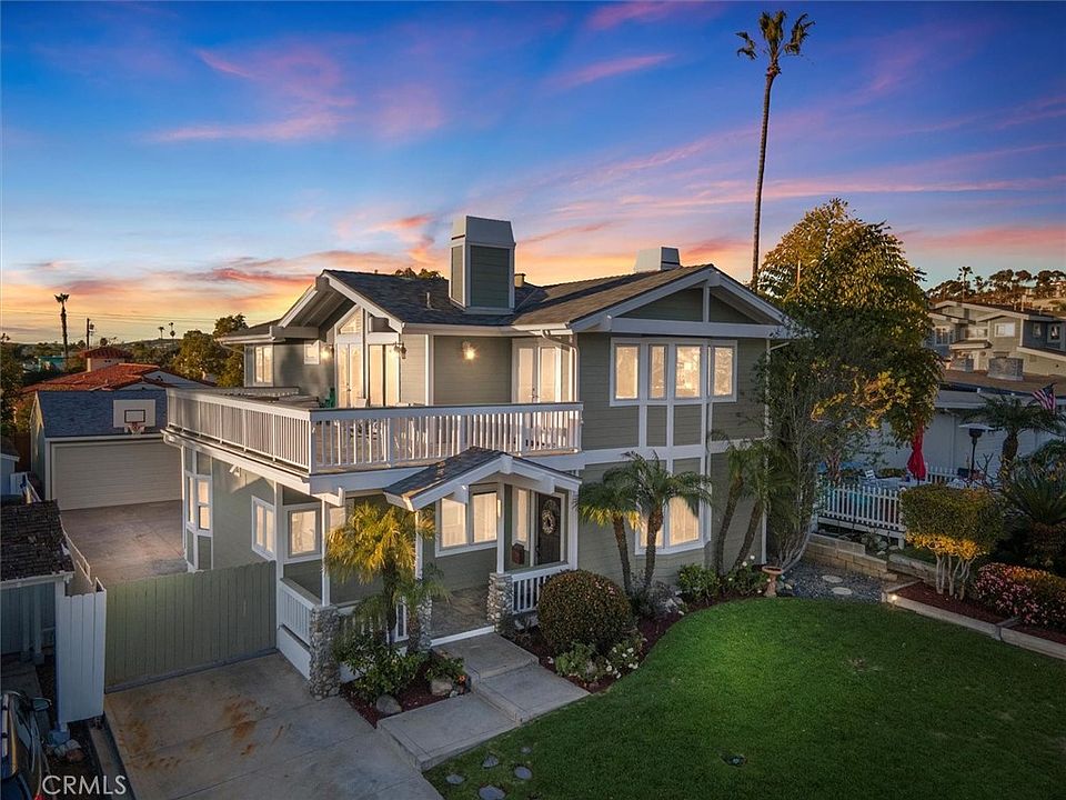 Highly sought after South West coastal community San Clemente Beach home with panoramic ocean and Catalina Island views where you can walk to the sand, the pier and all the quaint downtown shops and restaurants. Just refreshed and updated, this wonderful property is move-in ready. New paint, refinished natural hardwood floors, high efficiency HVAC system, new LED recessed lighting and high capacity water heater are just a few of the upgrades.The oversized garage has been enhanced with special floor coating and fresh paint with a built-in electrical panel for a relaxing hot tub. The gorgeous kitchen features Commerical grade stainless 6 burner Decor oven and Decor coffee station. Updated custom cabinetry with under counter lighting and tile backsplash. Oversized Island perfect for morning coffee and entertaining. Adjacent dining room with glass slider brings in wonderful natural light. The natural hardwood floors, built-in bookcases, bay window and stone fireplace really bring together the living room. Two downstairs bedrooms with one being a downstairs master with it's own glass slider with direct views of the lush and private backyard make this a rare find for a multitude of multigenerational living options. Upstairs you will find a massive room perfect for a second master bedroom with dual french doors and stunning ocean views that will take your breath away. Every morning you can enjoy your favorite hot beverage from the built-in coffee bar or a cold beverage from the convenient mini fridge. Light a cozy fire in the impressive custom stone fireplace to take the chill off. Enjoy the huge wrap around deck watching fireworks with family and friends. Outdoor shower for after the beach. The oversized gated driveway is a must have for a beach home to store your golf cart for an easy trip to unload surfboard and beach gear. This home allows you to walk freely to the beach, downtown restaurants, boutique stores, coffee shops and a cute delicious gelato shop just up the street. It's everything you need to make this home the perfect beach residence that can be enjoyed by family and friends for years to come.