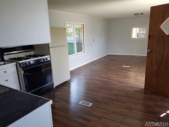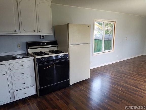 Mobile home with real estate. 1 BR, 1 BA remodeled, new flooring, drywall, trim. Updated bath. Spacious kitchen with gas stove, refrigerator. New metal siding and skirting. Tenant ready.