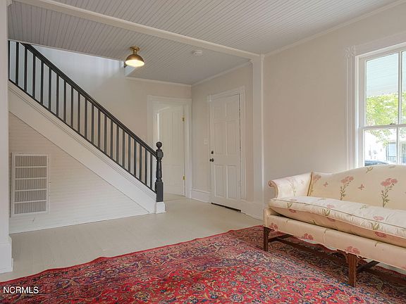 This turn of the century home is DownEast Preservation's latest historic downtown Edenton save! Original mouldings, beadboard ceilings, and charming gingerbread have been updated with all new wiring, plumbing and HVAC to create a perfect blend of authentic character and modern construction. The floor plan offers a primary bedroom on the first floor with a walk in shower and 2 additional bedrooms upstairs. The kitchen is outstanding - stylish navy cabinets and white marble countertops are a stunning combination! The rear deck overlooks a fenced back yard. Come be a part of the exciting revitalization of unique historic homes in downtown Edenton!