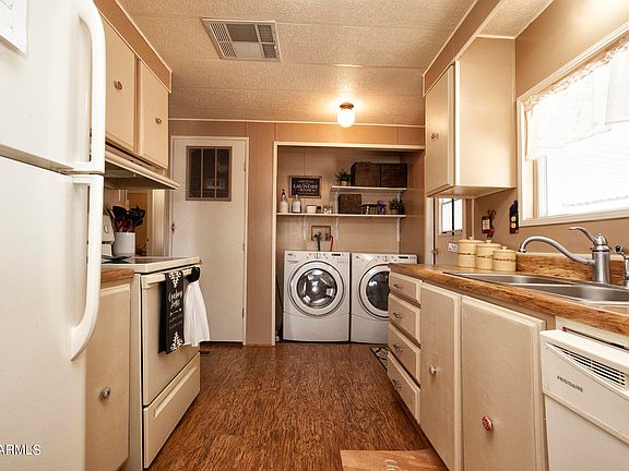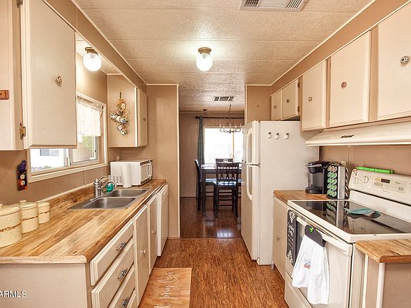This home is located in a great adult community with heated pool, pickle ball court, and a recreation center. This home has 2 bedrooms the primary is large with room for a nice sitting area, 2 bathrooms recently renovated . Move in ready with new carpet, new paint, new bathroom vanities, guest bath has new tile. Clean and cute a great place to spend some time in our awesome Arizona Sun!