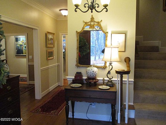 Beautiful traditional home with double-gallery porch in quiet, bucolic setting. Main BR on first floor with large bath. Workshop off carport. Big family room with nice fireplace. Big, eat-in kitchen with sunroom off breakfast area. Terrific storage and good floor plan. Well maintained charmer.