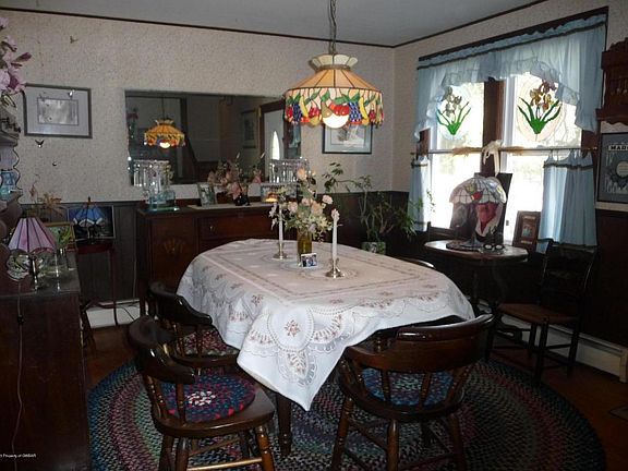 Lovely, traditional 4BR, .21BA home on 1.032 acres; HW; LR w/stone FP; formal DR; eat-in KIT w/appliances; gas pot belly stove; 1st floor FR w/beautiful stone FP, bar and sliders to 31.9 x 16 deck. MBR w/bath; 1st floor laundry; gas heat; 2 car garage w/loft & carport PLUS 2BR apartment w/LR, KIT & BA. Across from Lake Noxen School & close to lake! Terrific property!