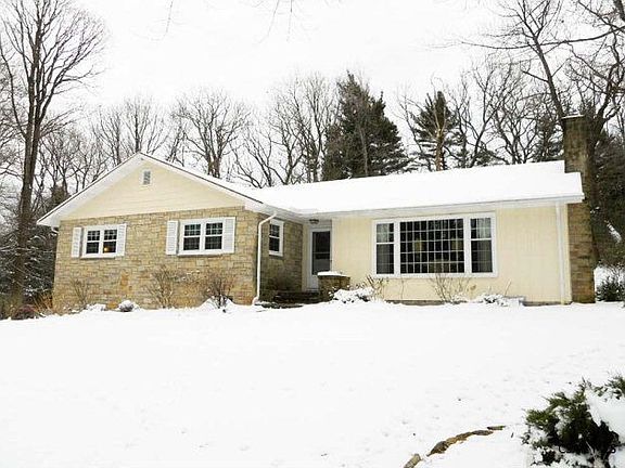 6227..Fabulous private setting & extensive updates in this 3 Bedroom, 2 Bath Ranch on 1.5 acre partly wooded lot. Red Oak floors in LR, DR, Kitchen & Breakfast Rooms. Vermont Castings insert in LR fireplace. Re-textured ceilings, replacement windows, newer exterior doors. Kitchen w/ center island, beamed ceiling, desk area, solid surface counters - all kitchen appliances convey. White oak floors in Bedrooms. Large Lower Level Family Room w/built-ins. Ample storage. 14 x 20 paver stone patio. Two car garage w/ workshop. 1 Year Home Warranty.