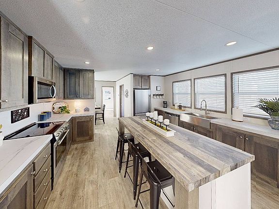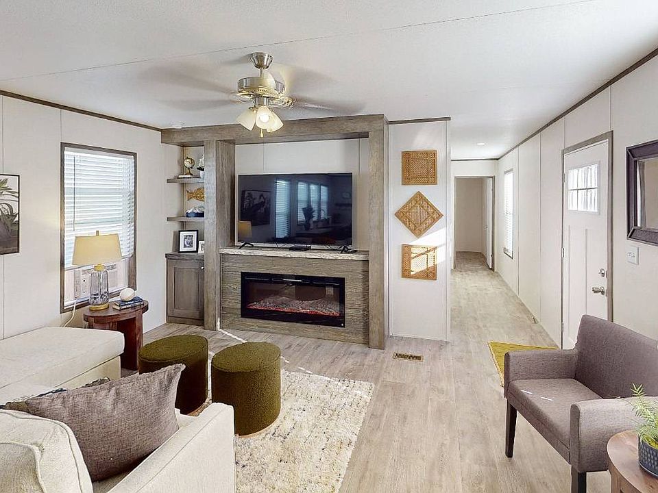 Enjoy easy, low-maintenance living in this thoughtfully designed 1,216 sq. ft. home. The open-concept layout creates a bright, comfortable space for everyday living, while the split-bedroom design offers privacy when you need it. The primary suite features a soaking tub, separate shower, and double sinks, making mornings smoother and evenings more relaxing. On the other end of the home, you'll find two additional bedrooms and a full bathroom-perfect for kids, guests, or a home office. Step outside to a spacious deck where you can unwind, fire up the BBQ, and entertain with ease. Located in Rosenberg, Texas, just a short drive from Houston, this professionally managed, family-friendly community includes lawn maintenance, so you can spend more time at home enjoying family and friends. Financing options available: rent-to-own or purchase.