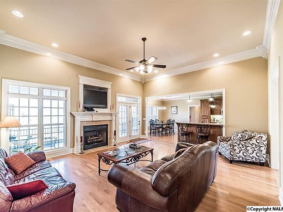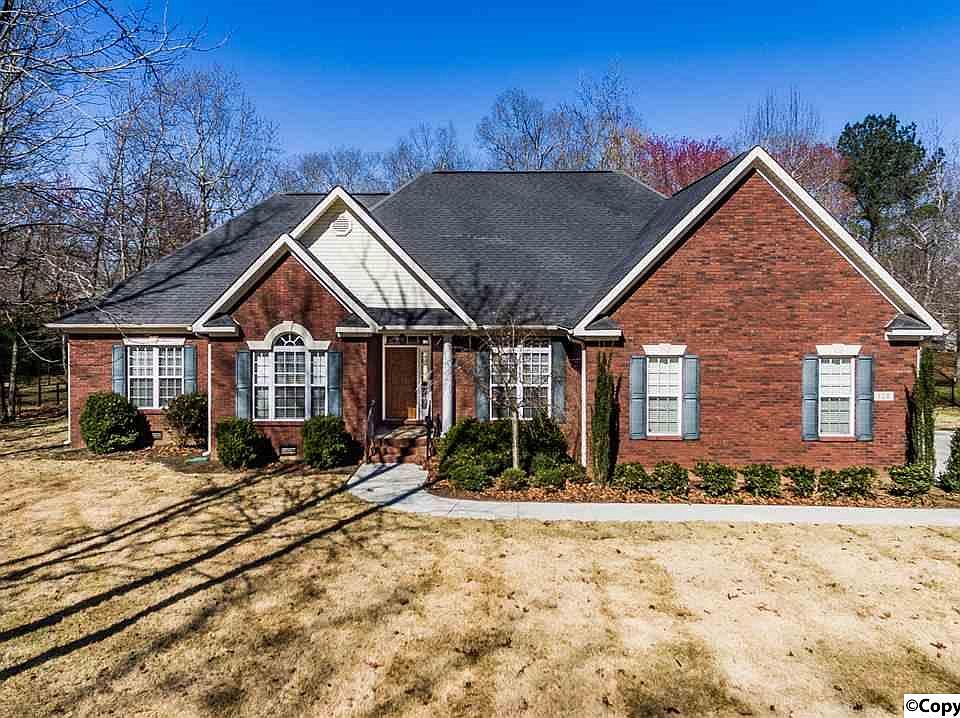 Stunning & spacious brick 4 bedroom home on huge lot! Open floor plan w/gas logs in great room, trey ceiling in dining room & master bedroom. Large kitchen w/granite counter tops, tile backsplash, breakfast area & breakfast bar, sleek island & stainless appliances! Master Glamour bath w/2 walk in closets, double vanities & w/pool tub. Lots of hardwood floors, heavy 6 inch crown molding & smooth ceilings. Transom windows in foyer, dining room & great room for lots of natural lighting! Palladium window in 2nd bedroom. Laundry room w/ lots of cabinets & utility sink Oversized side entry garage. Nice covered back terrace leading to patio w/fenced back yard & beautiful views. Zoysia grass.