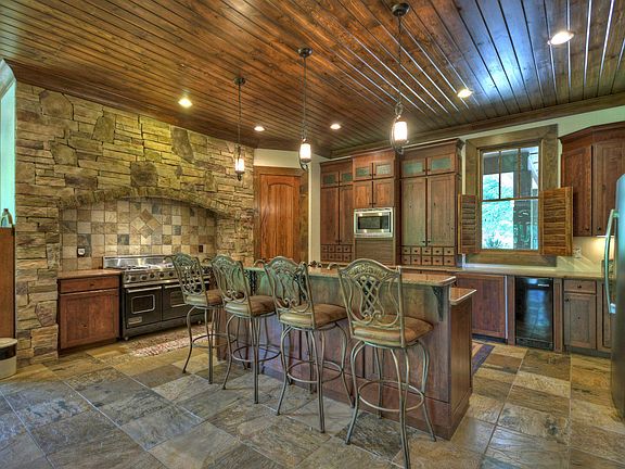 Stunning 5bed/4.5bath, custom crafted mountain home located in one of the most serene settings in all of N GA! Complete privacy on 5 acres, Turniptown creek frontage, mtn views & custom details throughout. The grand entry way leads to a gorgeous stone, double sided gas fireplace, wall of windows, & inviting great room. Chef's kitchen features a 6 burner Viking stove, custom stone hood, granite countertops & adjacent dining with seating for 12. Master on main features a large sunroom, sitting area & adjoining bath w/ soaking tub, large tile walk in shower & his/her vanities. Travel upstairs to find a large open loft, two bedrooms w/ Jack & Jill bathroom & an additional en-suite bedroom. Full finished terrace level features gas fireplace, bar, additional bedroom, 1/2 bath & theatre room. Recently stained, generator, elevator, 3 car garage, beautiful landscaping & unmatched quality construction!