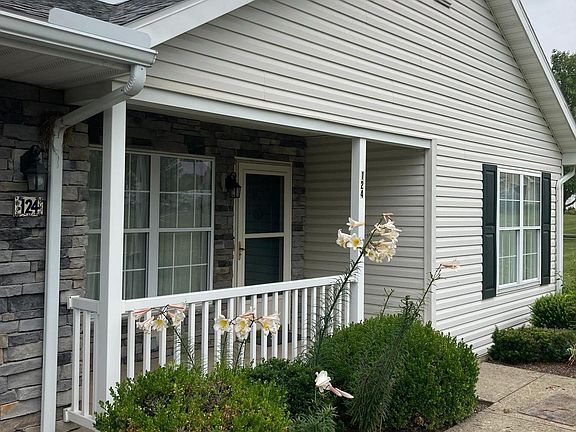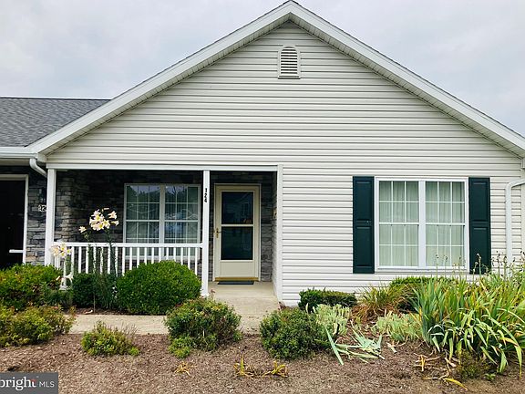 Rare opportunity to own a home in Penns Manor. Well maintained corner unit with a formal dining area that boasts a beautiful stone fireplace, and door to patio, where you can sit and enjoy the scenic view of the mountain! Primary bedroom suite with accessible shower and lower vanity, linen closet and vinyl flooring. Open floor plan with large living/kitchen area, separate laundry/mud room off the garage and two spacious bedrooms. Covered front porch with professional landscaping. Community center for residents use. These properties do not come up often so don't delay! Schedule your tour today!