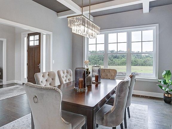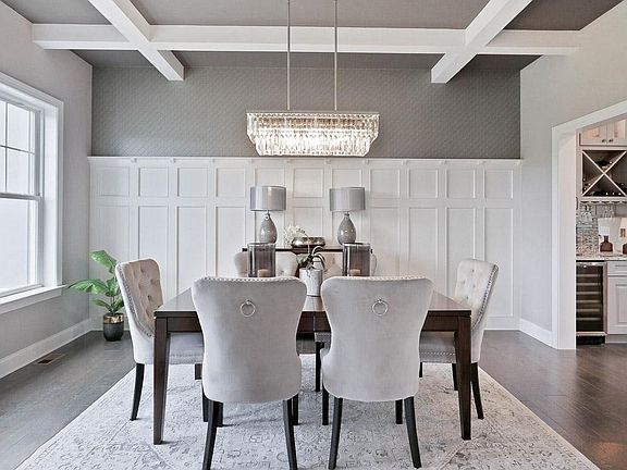 Designer details abound in this stately 2-story home with craftsman style exterior complete with fiber cement siding, attractive stone veneer, and a welcoming front porch.. A 3-car garage leads to the mudroom with built-in lockers. To the front of the home is the living room and elegant dining room with coffered ceiling detail and craftsman style wainscoting with chair rail. A convenient butler's pantry lays between the dining room and the open kitchen with Cambria countertops, tile backsplash, and stainless steel appliances. Off of the main kitchen is the prep kitchen and spacious pantry. The sunny breakfast area provides access to the screened-in porch. The 2-story great room features a cozy 2-sided gas fireplace with stone surround. Tucked away from the main living area is the study with tray ceiling and stylish trim detailing on walls and above the fireplace. The well-appointed owner's suite includes a private bathroom with freestanding tub, two vanities with quartz countertops, a custom tile shower, and an expansive closet. Also on the 2nd floor is a convenient laundry room, 3 additional bedrooms, and 2 full bathrooms.