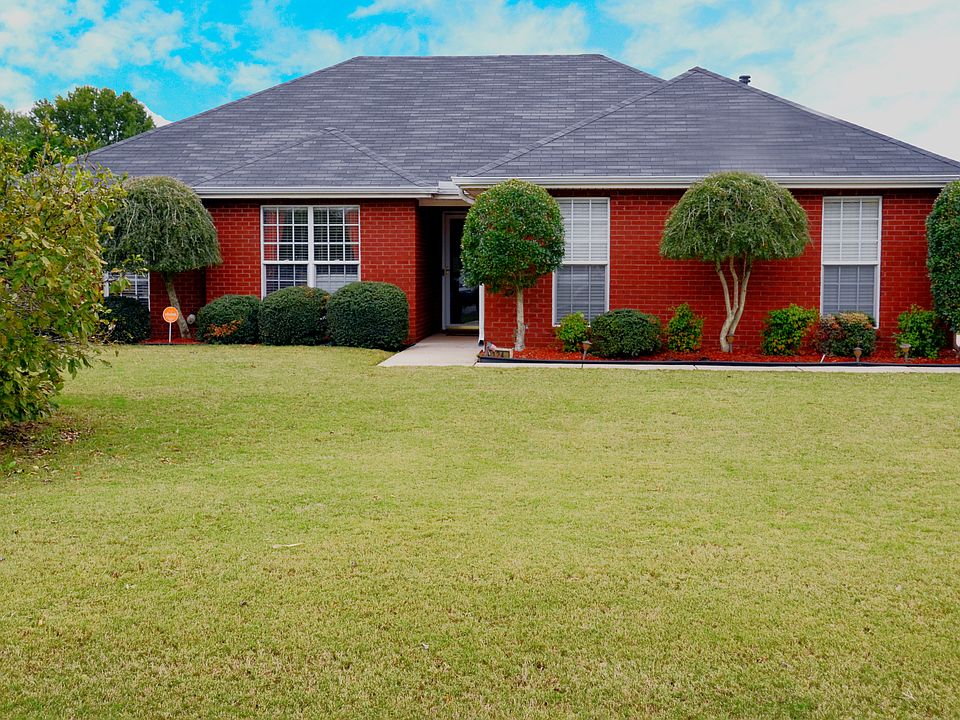 Awesome full brick home with lots of extras including hugh fenced yard, granite counter tops in kitchen, wood flooring, crown molding, sun room, trey ceilings and much more. Large great room includes hardwoods, trey with gas log fireplace. NEW PAINT! Washer and Dryer remain. Almost 1/2 acre fenced yard, side patio, storage building and much more. HARDWOODs throughout except for wet areas. Master bedroom has trey ceiling, ceiling fan, walk in closet with large master bath with separate shower. Lots to love !