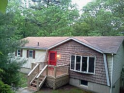Spacious Bi-Level Home in excellent condition. Features Roomy Living Room, Large Modern Kitchen with Dining Area, Hardwood Floors, Master Suite and 2 additional bedrooms. Finished basement offers large family room, 2 additional finished rooms, rough plumbing to add an additional bath and 1 car garage. Also has an oversized back deck with a seasonally running stream at end of property. Close to the pool, beach, tennis court and playground area. Home is close to the town of Milford and located in Pocono Mountain Woodlands. LOW TAXES
