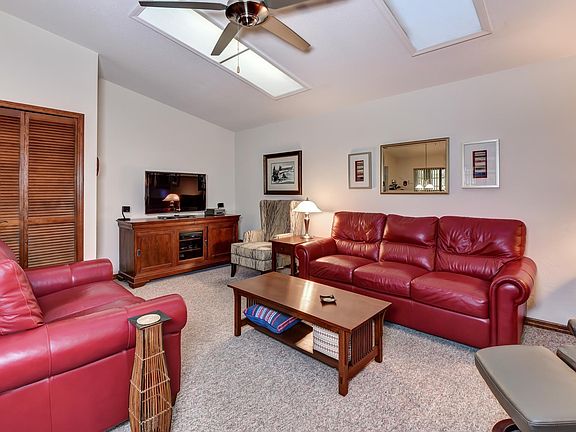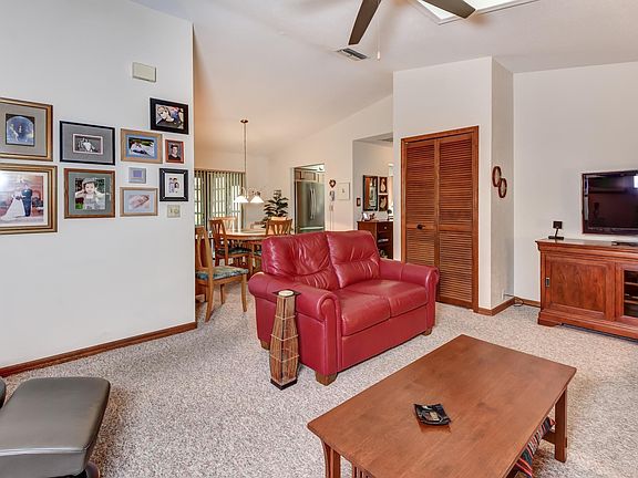 Very nice 2 bed 2 bath attached home with 1 car garage in wonderful smaller community tucked away and close to everything. You must see this fabulous kitchen!! Featuring a **gas range** & upgraded appliances that you do not typically find in homes like this. Newer, custom wood cabinets, topped with granite and tile backsplash, include large drawers for pans, lazy susan, a customized pantry with pull out shelving. French door stainless steel refrigerator with bottom freezer. Vaulted ceiling with living room open to dining room. Beautiful new tiled shower in master bath. Murphy bed in guest room. Customized closets. Wood floors in foyer and kitchen, carpet through living areas and bedroom, with tile in bathrooms and Florida room. Furnishings are available and can be purchased separately.