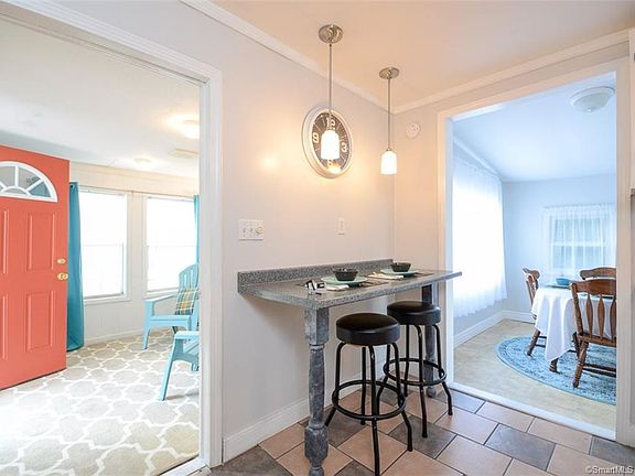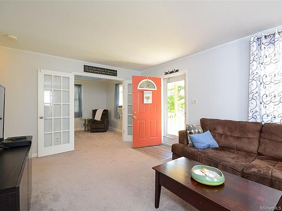 More home than meets the eye! This adorable cape is updated and beautifully decorated -- a turn-key home! The kitchen with breakfast bar opens to a sunny dining area that leads to the deck. Also off the kitchen you'll find a sunroom with it's own entrance that can be an office, sitting room... whatever your heart's content! Off the living room, French doors open to an office that could potentially be a fourth bedroom. Another bedroom and full bath complete the first floor. Go upstairs through the charming arched doorway to a spacious hallway landing with built-in bookshelf. Two more bedrooms are joined by a jack-and-jill half bath. Numerous updates include a newer gas furnace, new driveway, new front porch, thermopane windows, new carpet and fresh paint. Super convenient location close to major highways - great for commuting! Welcome Home!