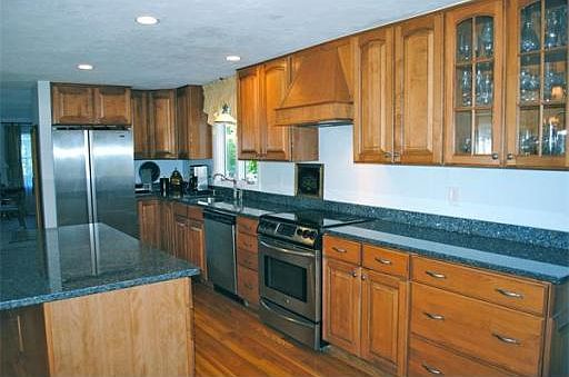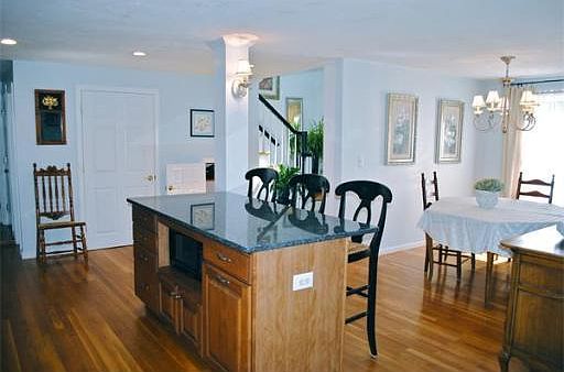 Beautifully crafted Gambrel offering 3,500 sq.ft+ of living space! Totally renovated within 10 years showcasing an impressive inlaw privately located on 1st floor. Stunning open kitchen w/glazed honey maple cabinets w/granite counters, 6 ft center island w/breakfast bar, SS appliances & pantry. Open floor plan into DR. Front to back LR w/gorgeous custom mantel FP & den/office area w/slider to deck. Lge 4 bdrms, 2 1/2 baths in main home. Open foyer to 2nd staircase leading to an impressive mstr suite including mstr bath w/double vanity, shower spa & large separate sitting rm! 2nd flr laundry rm. Lower level w/FR & built in bar, wainscoting & newer carpeting. In-law includes kitchen w/maple cabinets w/breakfast bar, open LR, lge bdrm, oversized bath & separate private patio, walkway & side entrance. Brick walkways & 2 custom sheds. Newer 12x40 trek deck overlooking private backyard that backs up to beautiful open land. Sprinklers, 10 yr young roof & heating system, central air!