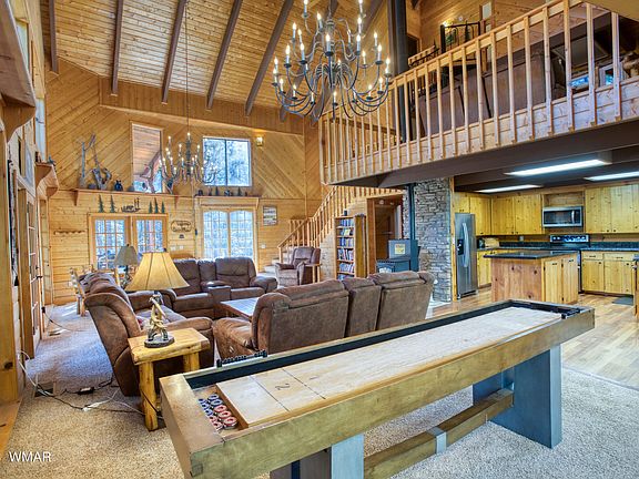 Welcome to Bearadise Lodge, where a 2816 sq ft cabin with 6 bedrooms and 3 bathrooms awaits you amidst a lush pine forest on 1.5 acres. Nestled just under a mile away from Walmart, Walgreens, and eateries, relish the secluded woodland ambiance while still relishing the town's conveniences. Delight in an 8-person hot tub, an array of games, tranquil hammocks, and an outdoor fire pit - everything you need for an enchanting escape! The cabin sleeps 12 to 18 guests comfortably.
