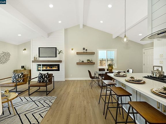 New Year...New Home! Welcome to this rare one of a kind, elegant single story, 4 bedrooms 2 baths home situated within a private neighborhood along the Concord/Pleasant Hill border! Completely renovated to the studs featuring stunning vaulted ceilings, open floor plan and a large center kitchen island, excellent for cooking while entertaining. Brand new stainless steel appliances, beautiful quartz countertops and gorgeous kitchen cabinetry. Large flat lot perfect for a future pool/ADU and no rear neighbors. RV access and extra wide front driveway. Enjoy low energy bills with completely paid-off solar. Tank-less water heater and new energy efficient dual pane windows. Brand new roof and gutters! New outdoor concrete patio featuring a relaxing fire pit, perfect for entertaining. All new front and rear yard landscaping! New copper plumbing, new electrical panel, EV charging outlet and a brand new electric HVAC system to go with the solar. Home includes washer and dryer, finished garage with new epoxy flooring and so many more additional custom features. Over $275,000+ in updates! Enjoy walks/biking along adjacent trails. Nearby shopping (Costco) downtown Pleasant Hill and close freeway commute on-ramp access. Home qualifies for a First Republic Bank Home Loan at 4.8% interest rate!