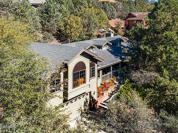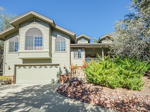 Located in the desirable Hidden Valley Ranch community, this stunning 3-bedroom, 2 1/2 bath home is ready for you. You'll love the kitchen, which features the latest appliances, beautiful granite countertops, and a practical island for added convenience. Just off the kitchen, there is a fully renovated pantry and laundry area, complete with an LG ThinQ ventless stacked washer and dryer. The primary bath has been completely remodeled and boasts a luxurious soaking tub, a chandelier, and a comfort-height vanity with dual sinks and mirrors. The spacious custom-tiled shower is exquisite as well. In the large primary bedroom, you'll find a cozy fireplace for those cool Prescott nights, along with large windows that showcase the beautiful views. Entertain guests in the expansive living room, which also has its own fireplace and access to two patios in the backyard. The family area features large windows that provide stunning views. For a tranquil start to your day, relax on the very private front porch with a cup of coffee while immersing yourself in the peaceful surroundings. The two patios offer unique experiences. One, just outside the living room, is designed for maximum privacy and reflection, while the other offers breathtaking views. The large lot, measuring 0.37 acres (yes, you read that right), is adorned with beautiful Ponderosa Pine, Alligator Juniper, Arizona Oak, and other native species, and it borders the seasonal Banning Creek. The oversized two-car garage is perfect for cars, equipment, and tools, and there is a bonus room for hobbies, exercise, or extra storage. Leaf filters on the rain gutters eliminate the need for dangerous cleanings. The community at Hidden Valley Ranch features a variety of amenities for residents to enjoy. These include a swimming pool, tennis courts, pickleball courts, bocce ball, handball, racquetball, and basketball courts. Additionally, there is a game room equipped with a ping ping table and a pool table, For special events, residents can use the community kitchen and gathering room. All these facilities are available to Hidden Valley Ranch residents. Our dynamic social committee truly shines, and it's exceptional to have a dedicated RV parking lot that enhances our community experience for everyone!