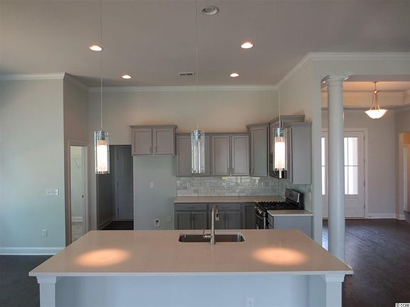 Spacious single level home with 3 bedrooms, office, 2 1/2 bathrooms, covered porch, and has 11 ft. high ceiling in main living area. Large kitchen with island that has granite, stainless steel appliance with a natural gas cooktop, and 36" staggered cabinets. Other standard features are hardwood floors throughout main living area, tile flooring in bathrooms, crown molding, and much more. Nice size master bedroom with bathroom that has tiled shower with garden tub, and double vanity. Enjoy the Myrtle Beach weather from your spacious covered porch, and golf cart to the beach and Market Common. ***Pictures are of same floor plan in one of our other communities and are for representation only. ***Square footage and measurements are estimates and are to be verified by the purchaser.
