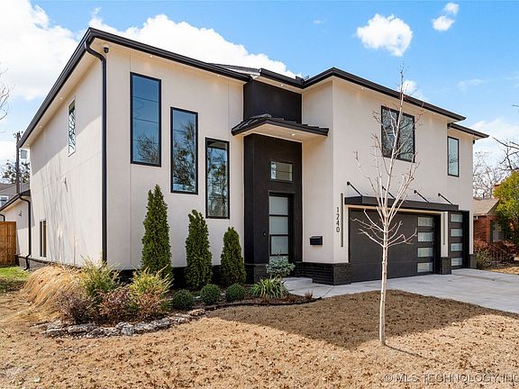 Discover a one-of-a-kind custom new home that seamlessly combines luxury, sustainability, and prime location in the heart of Midtown Tulsa. In a very sought-after neighborhood, this hidden gem offers unparalleled access to river trails, upscale dining, boutique shopping, and the renowned Gathering Place. Designed with a sleek, modern aesthetic, this stunning residence boasts five generously sized bedrooms, including two conveniently located on the main level. With both upstairs and downstairs laundry rooms, a dedicated office space, and four full bathrooms complemented by two additional half baths, this home is built for comfort and functionality. The expansive primary suite features an oversized walk-in closet with custom built-ins and pull-down rods for effortless seasonal storage.