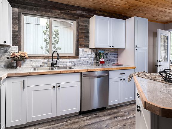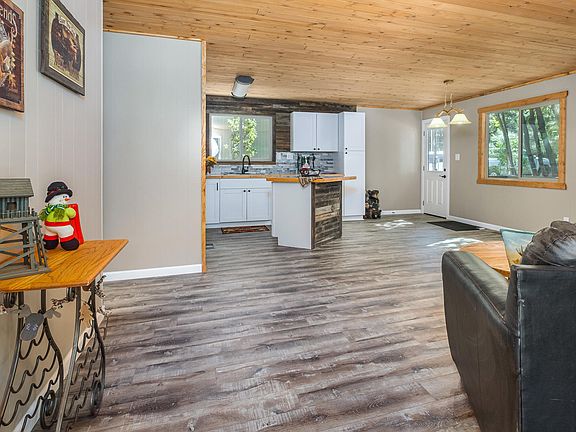 ''Almost New'' One Level Cabin is in the Highly Desirable Animal Hill Section of Pinewood. The seller has spared no expense in the quality of this remodel. New laminate flooring throughout. New forced air electric furnace. New stainless appliances, including fridge, disposal, cabinets and counter-tops. New interior / exterior paint. New water heater. New dual pane windows throughout. New T&G wood ceilings. New faux wood blinds, new tub and surrounds, new toilets and vanities, new doors including barn doors, and mirrored closet doors. New fans and lighting, new faucets, new plugs, switches, and door locks and knobs. All new wood trim throughout. Outside 24 tons of gravel and mulch and a large covered TREX deck for your outdoor enjoyment.